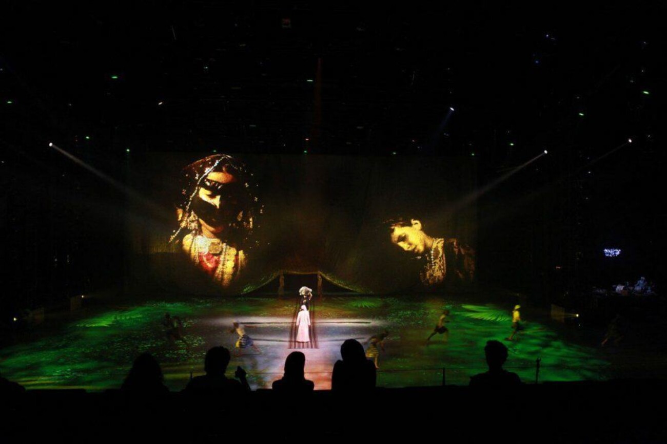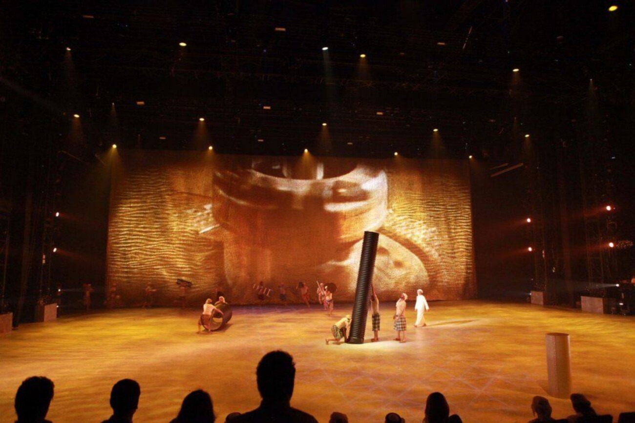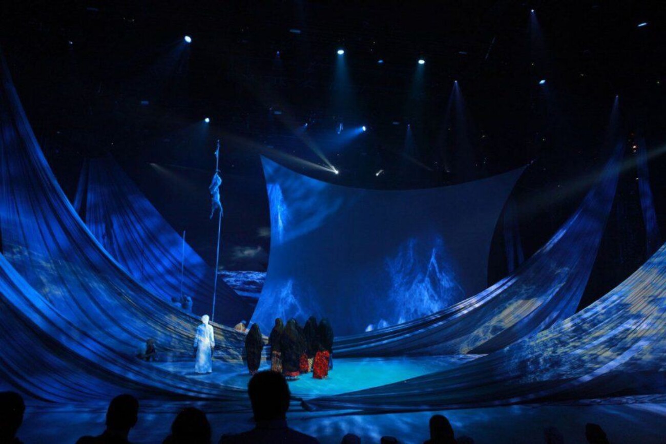 This production needed 48 projectors (20,0000 lumens each) and 19 Photon servers, it featured a wide variety of surfaces, drapes, and curtains as projection surfaces. They had a total production time of only five weeks to make it all come together as a breathtaking visual poem.