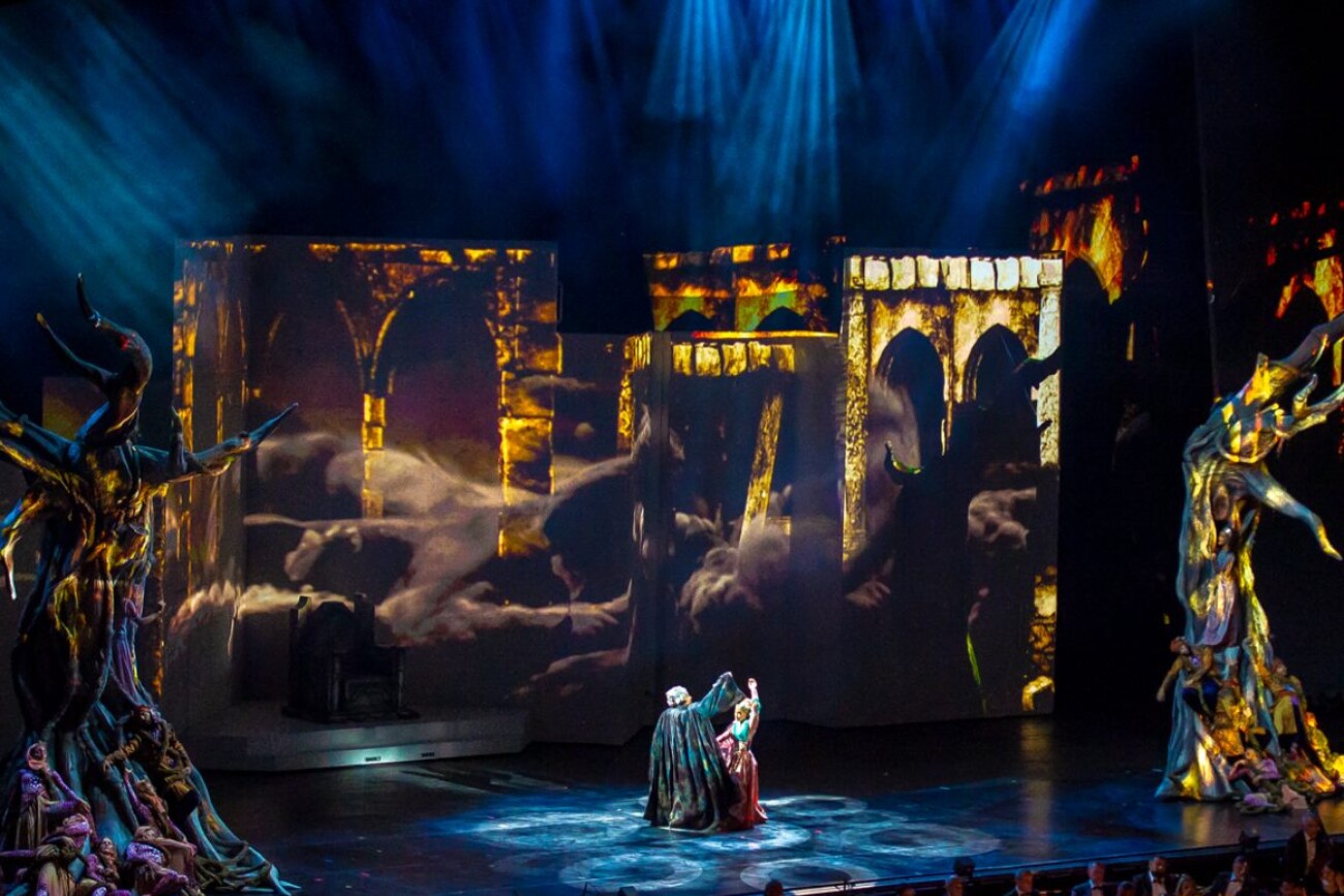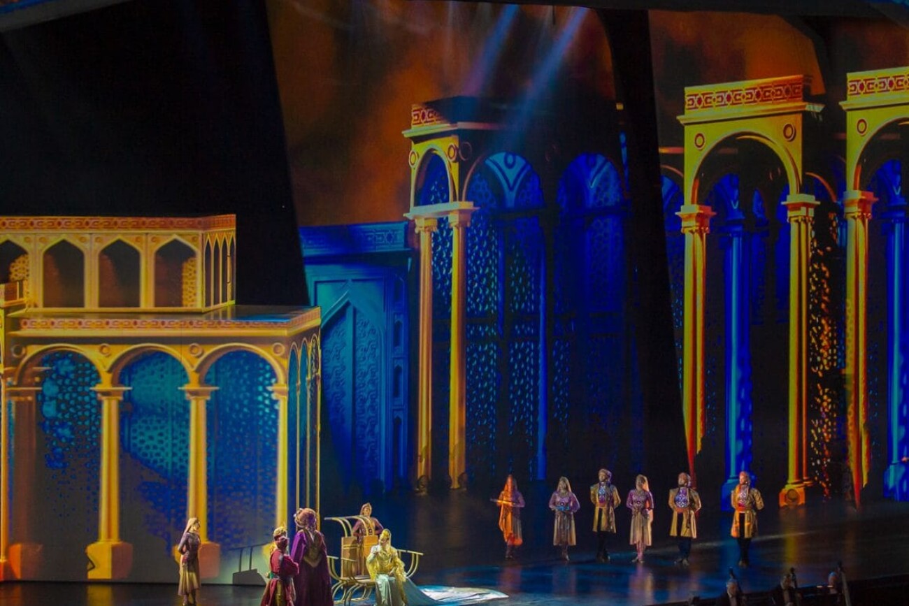 Le spectacle se devait d’être aussi captivant pour un public actuel que les contes de Shéhérazade – une épopée qui porte avant tout sur le pouvoir de fascination des conteurs. Artists in Motion (AIM) a créé d’impressionnantes projections pour que la scène puisse se transformer en décors extrêmement différents les uns des autres : une somptueuse bibliothèque, un jardin maudit, une terrifiante tempête en mer ou un ciel nocturne d’une beauté cristalline. L’équipe et la technologie de VYV – de même que le matériel de Creative Technology, un partenaire de longue date – ont su faire de l’ambitieuse vision artistique d’AIM une réalité renversante. « Le spectacle a vraiment été élaboré en symbiose avec la technologie de VYV », explique Anthony Bezencon, gestionnaire de projet chez VYV.