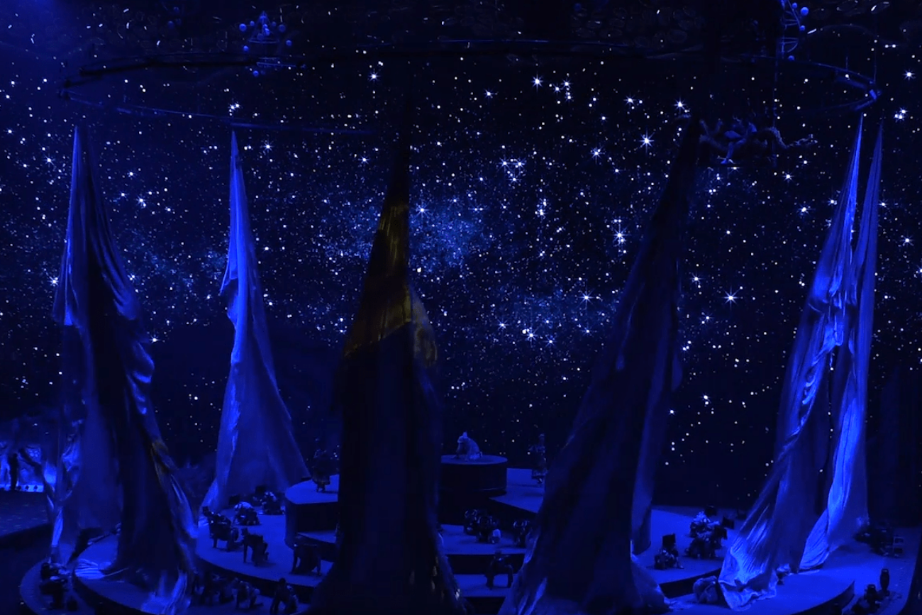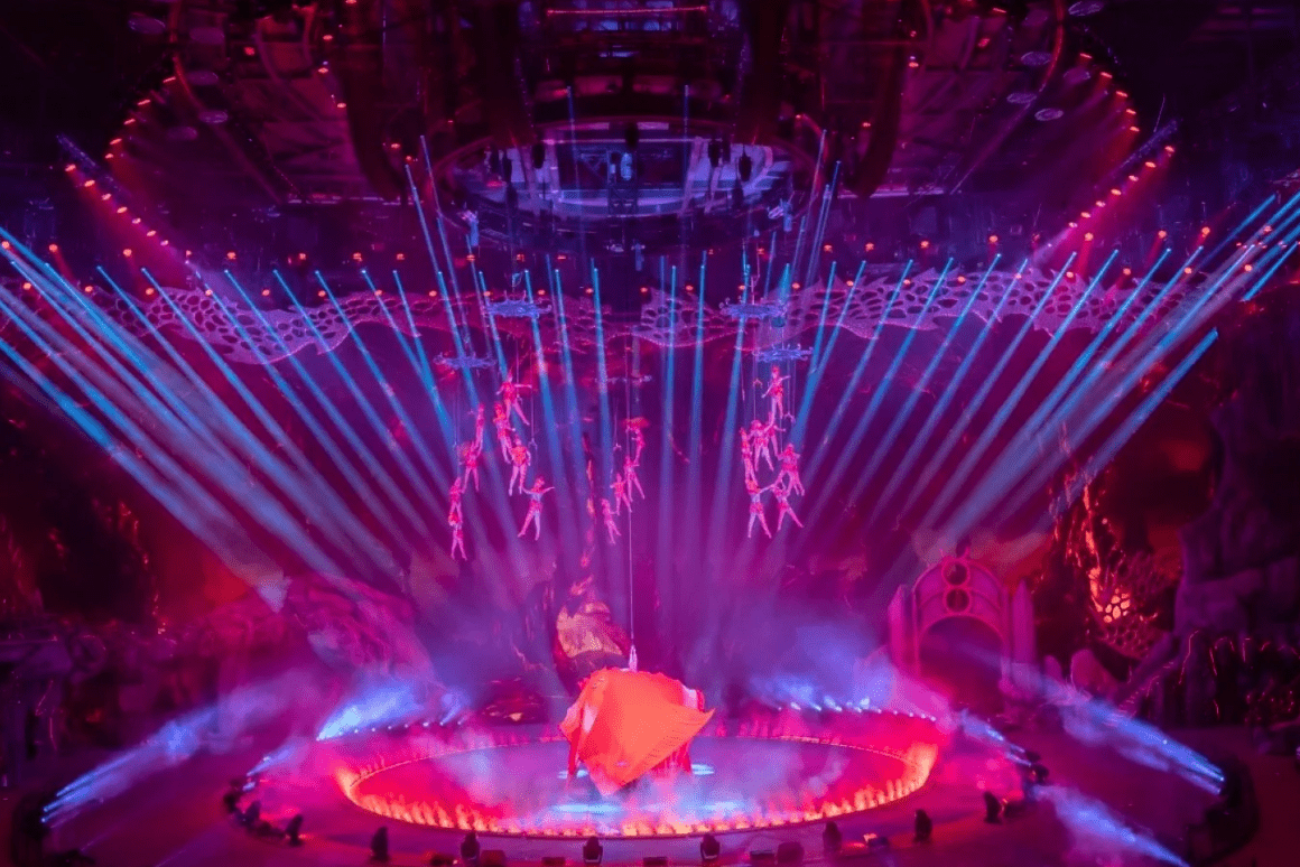 Au théâtre Chimelong, un édifice extraordinaire érigé au cœur de l’immense parc d’attractions Chimelong, à Zhuhai, en Chine, des amoureux maudits entreprennent un voyage tumultueux. Ils traverseront des paysages nocturnes, une forêt luxuriante et un désert menaçant, avant d’être de nouveau réunis dans une finale des plus flamboyantes.