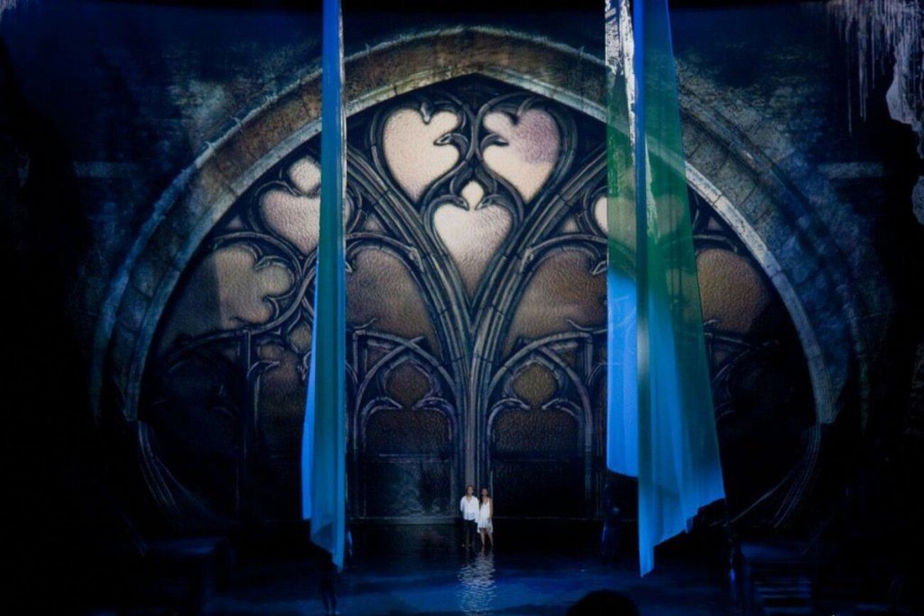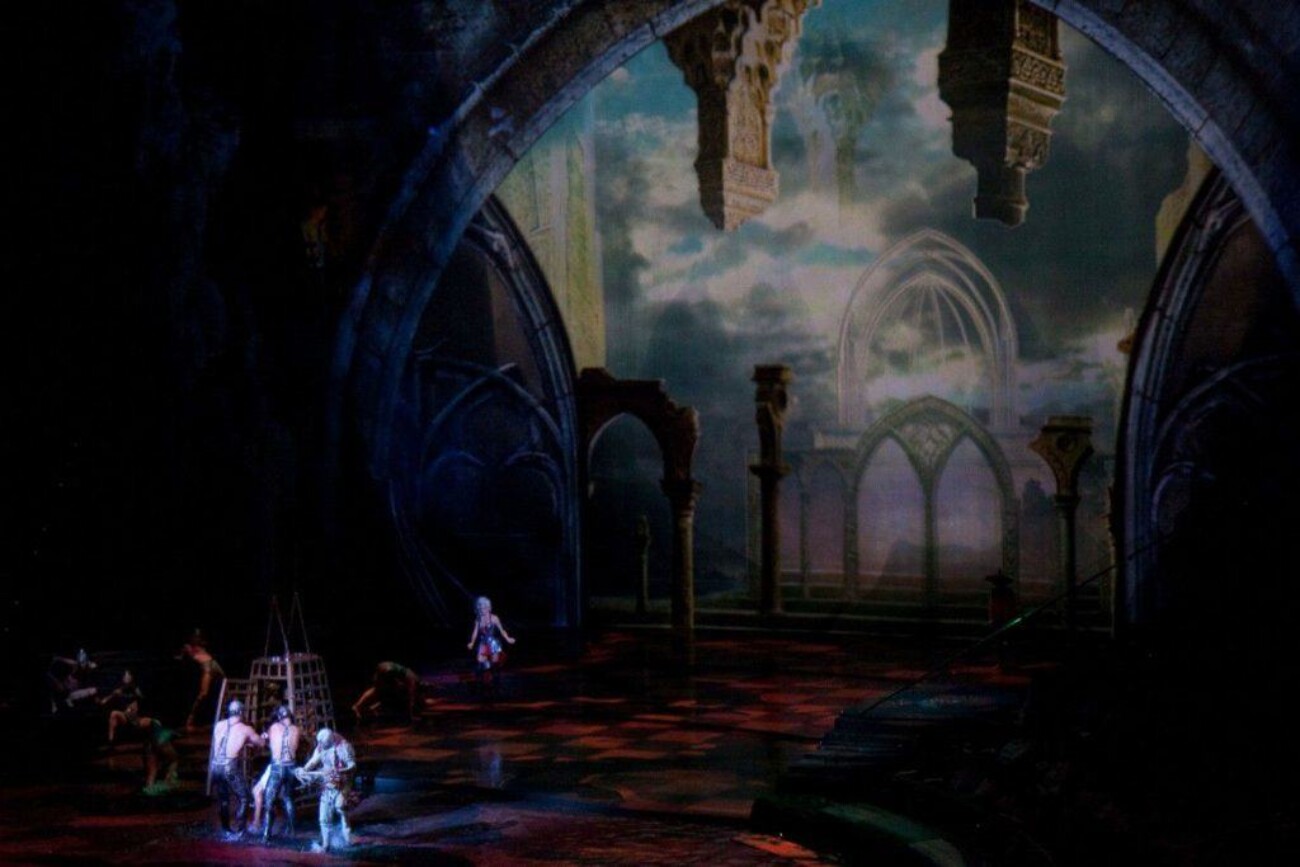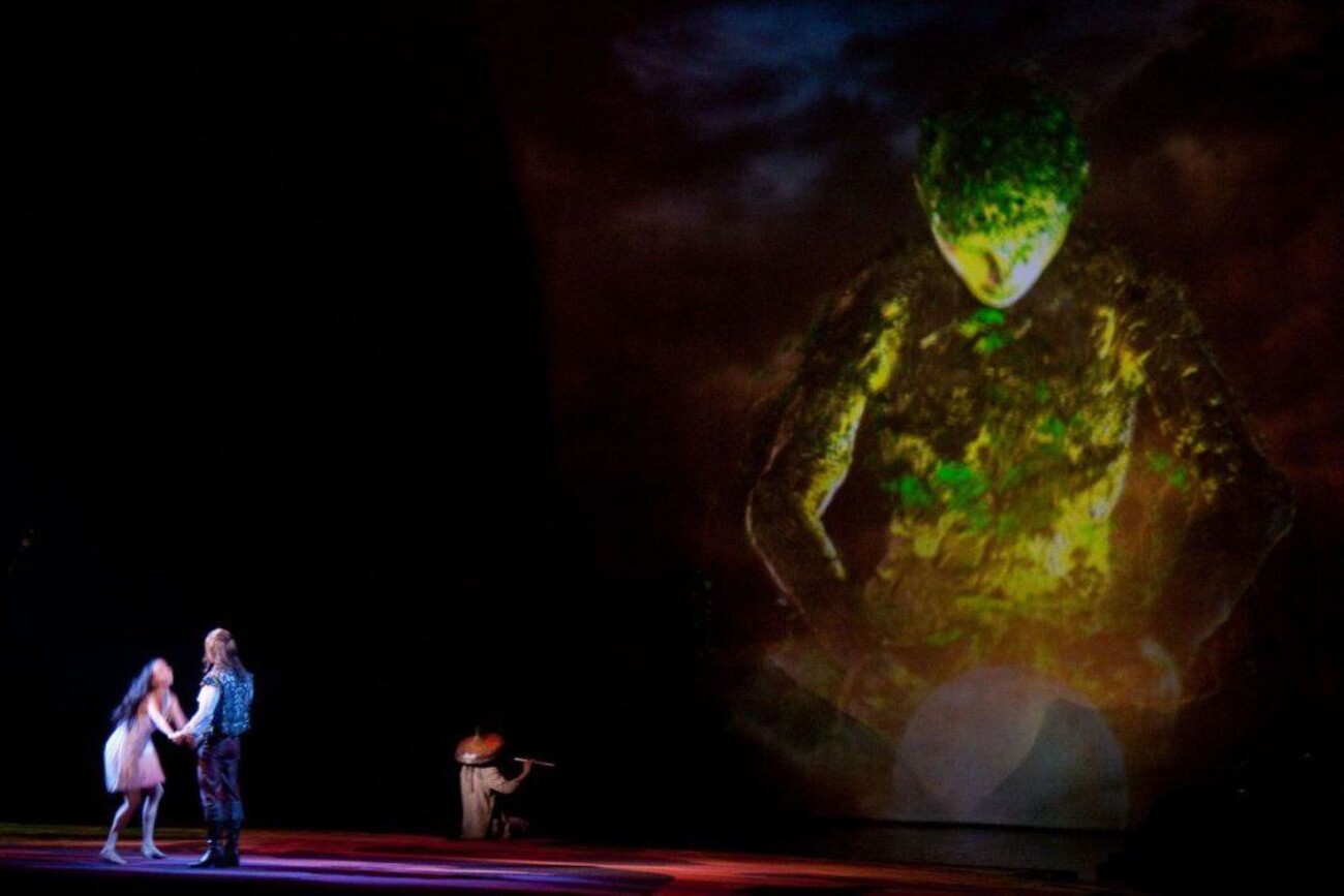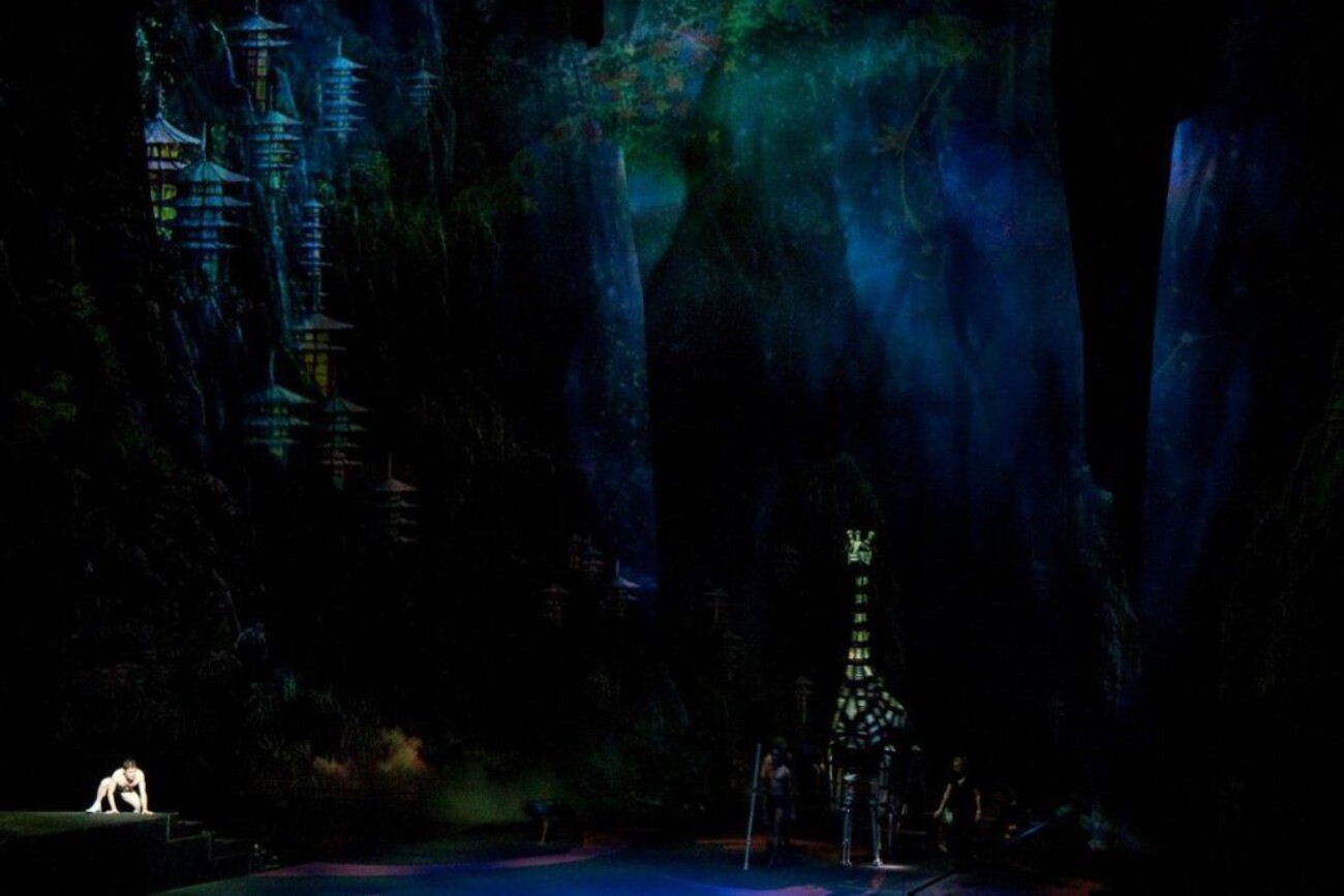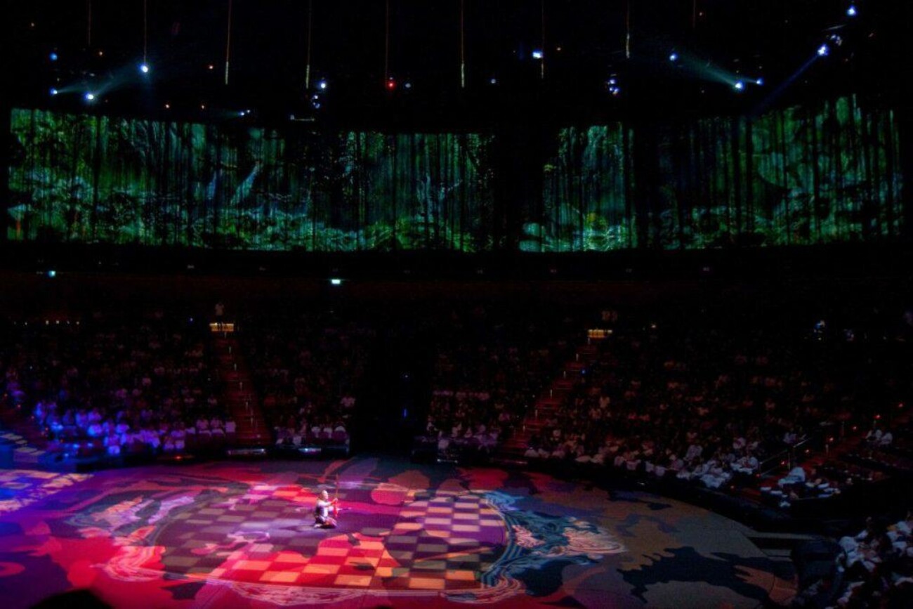 In addition to the four fixed projectors displaying the show’s gigantic backdrop, there were 10 Barco DML-1200 projectors that moved from one unexpected surface to the next: from skimming the water’s surface, to dancing amid water jets shooting through the air, to navigating through objects made from chain mail, and more.
