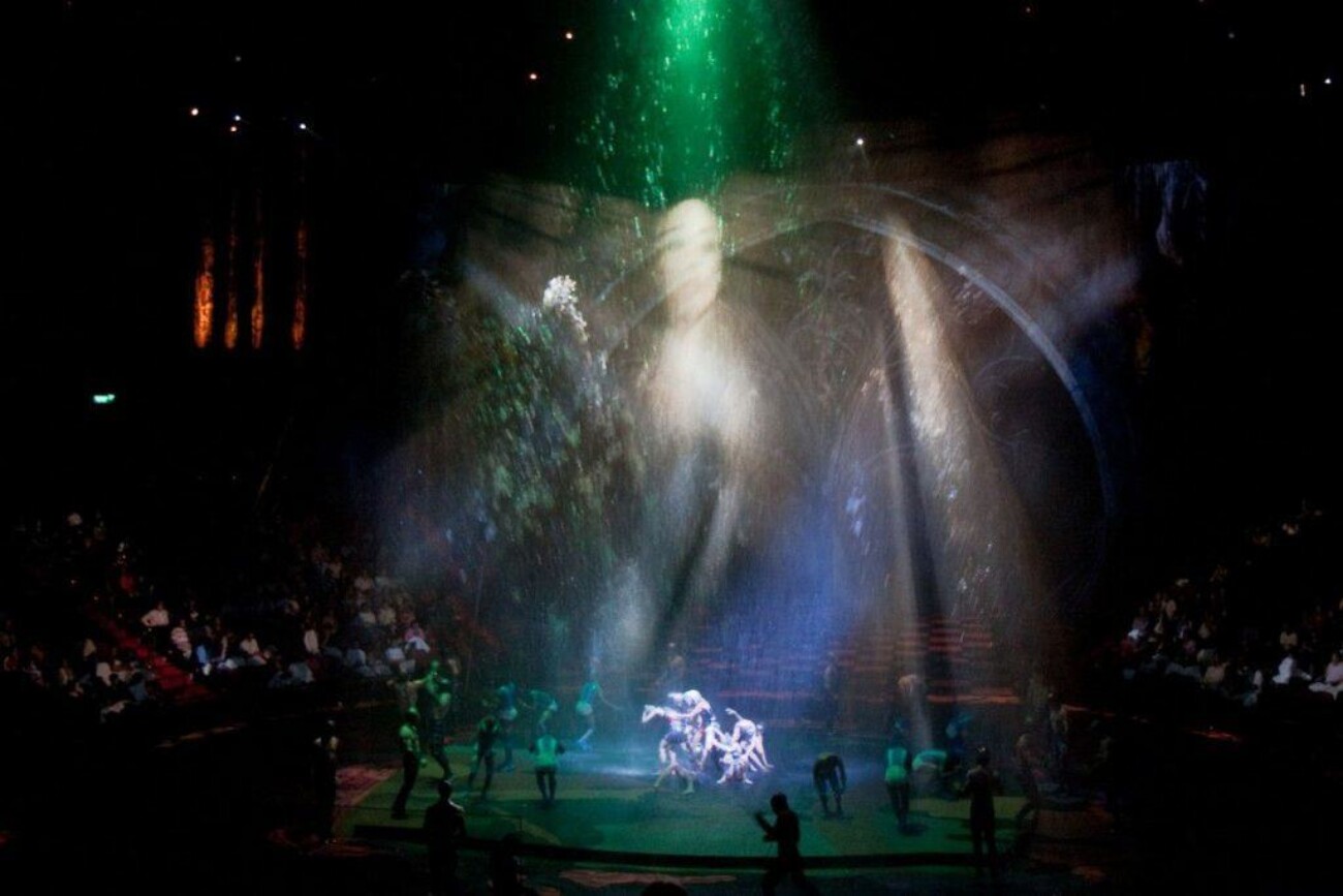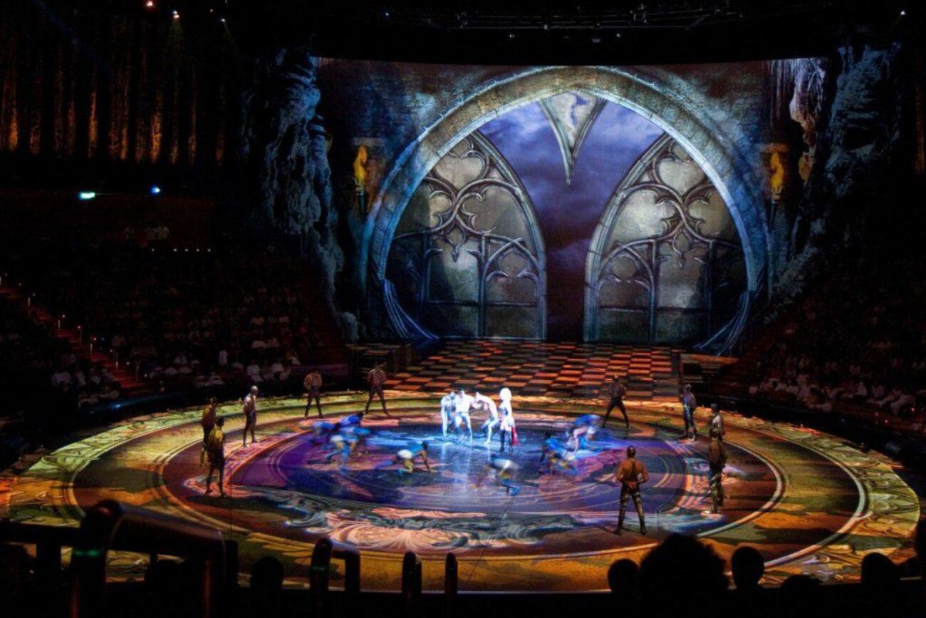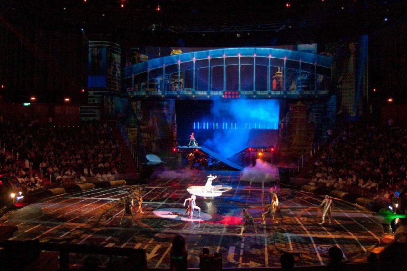 By February 2013, this 90-minute show has been performed over 1,000 times and seen by over 2 million spectators. Performed upon a flexible stage that can transform itself into different sets, the show features acrobatic elements and original acts, with a cast that includes over 80 gymnasts, circus artists, dancers, divers, actors, and motorcyclists.