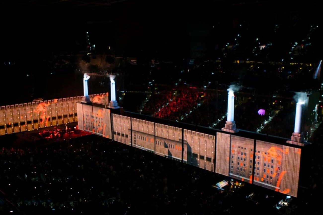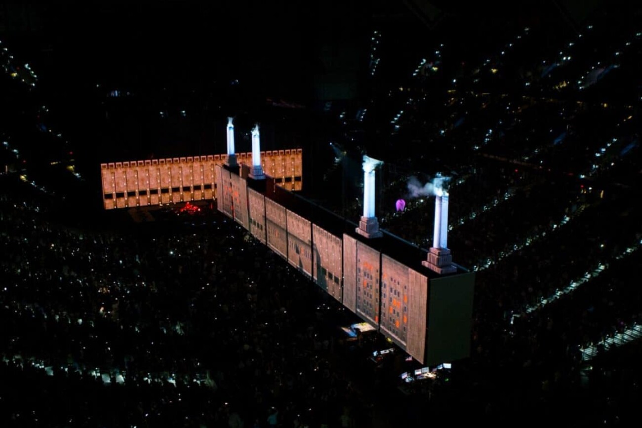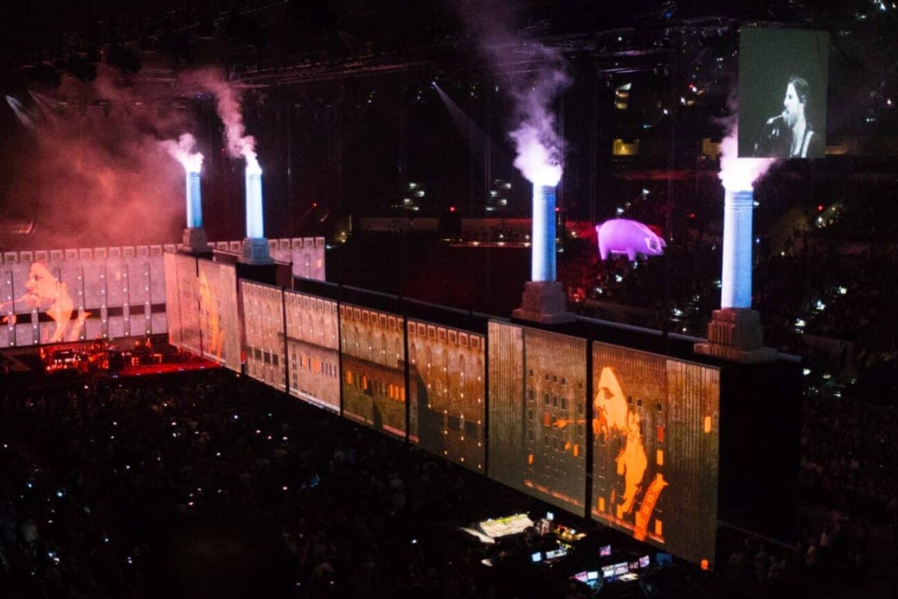 Effectivement, l’apparition d’Algie, est un incontournable de tous les concerts de Roger Waters. Nous avons utilisé 48 caméras et une douzaine de Copernic pour suivre et éclairer Algie, propulsé par un drone pour l’occasion. À un point précis du spectacle, un deuxième cochon s’illumine entre les cheminées, recréant la pochette de l’album légendaire de Pink Floyd, Animals, paru en 1977.