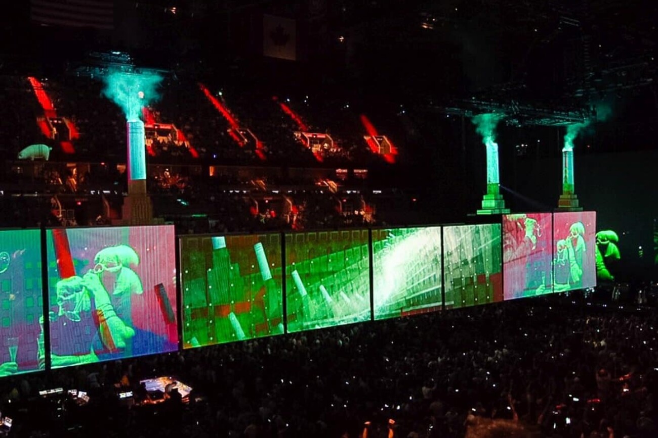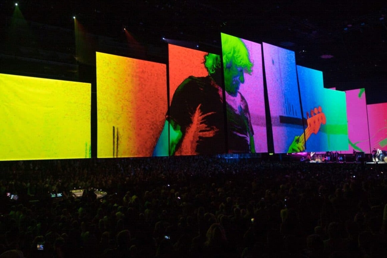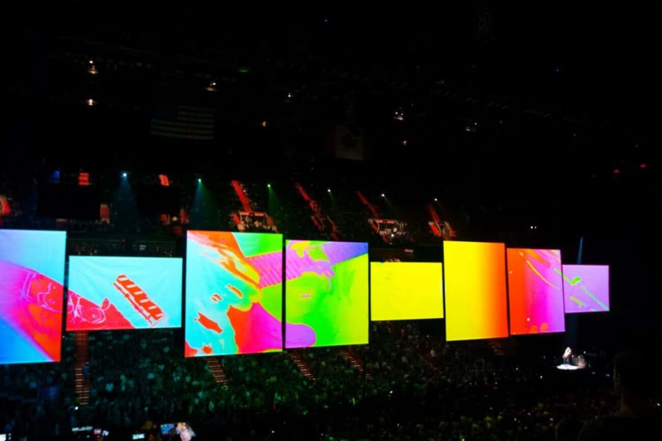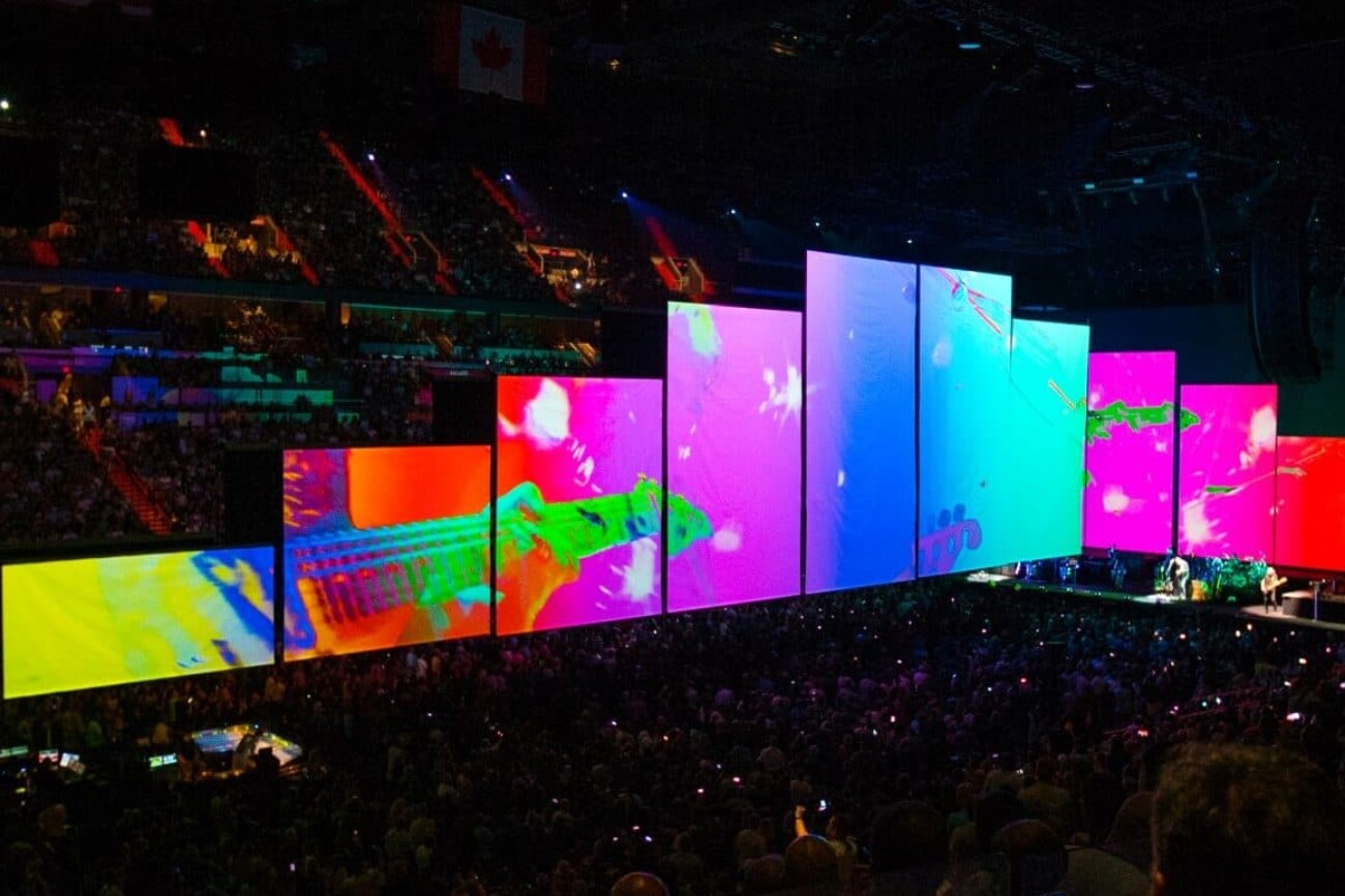 En mai 2017, Roger Waters a lancé sa tournée Us+Them. Ce spectacle compte plus de 20 surfaces de projection, notamment quatre cheminées gonflables, d’immenses écrans déroulants et un cochon volant propulsé par un drone. Les projections vidéo et les écrans à DEL de 6K s’intègrent à la perfection au contenu vidéo HD pré-rendu et non compressé avec des effets en temps réel, appliqués en direct au signal provenant des caméras.