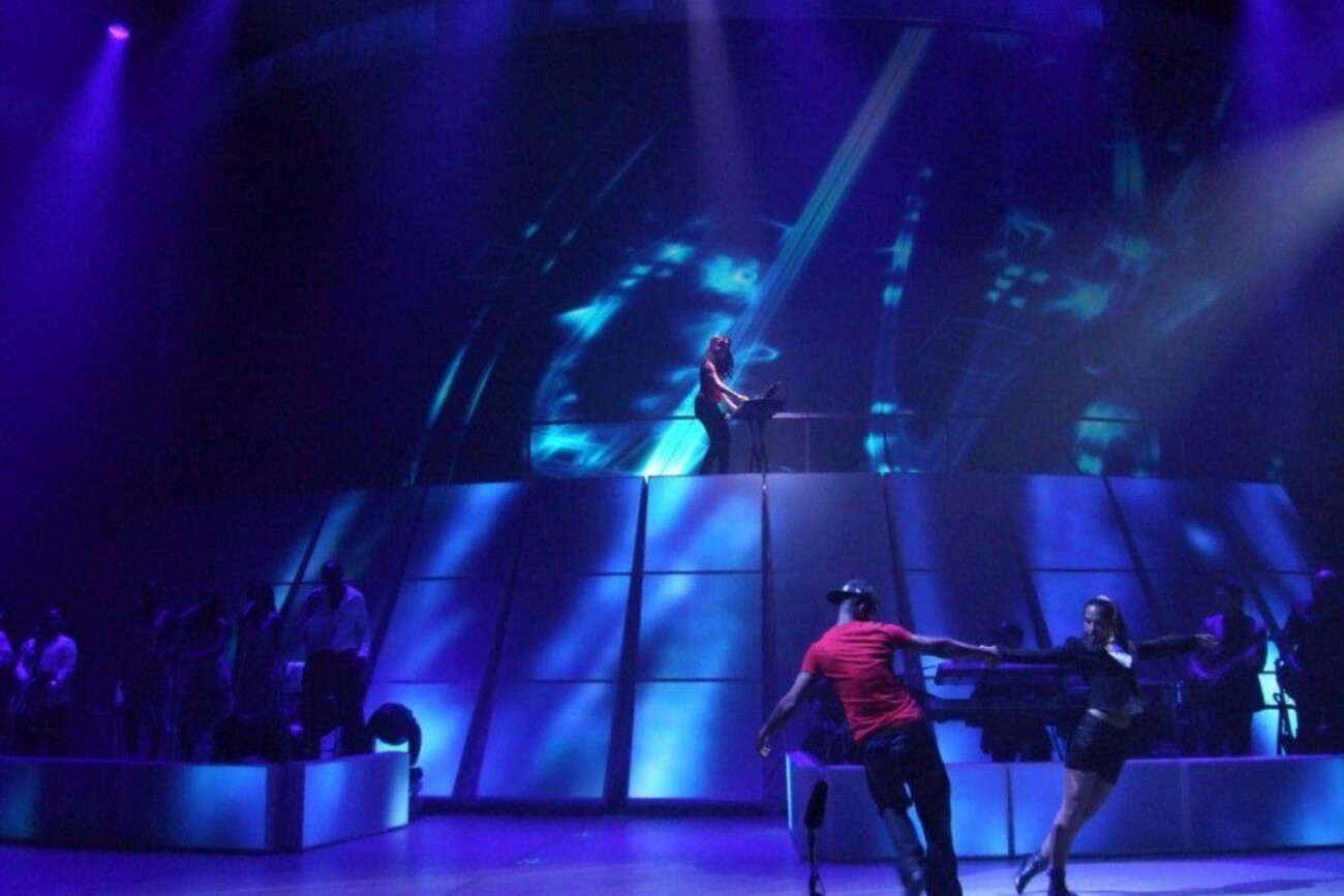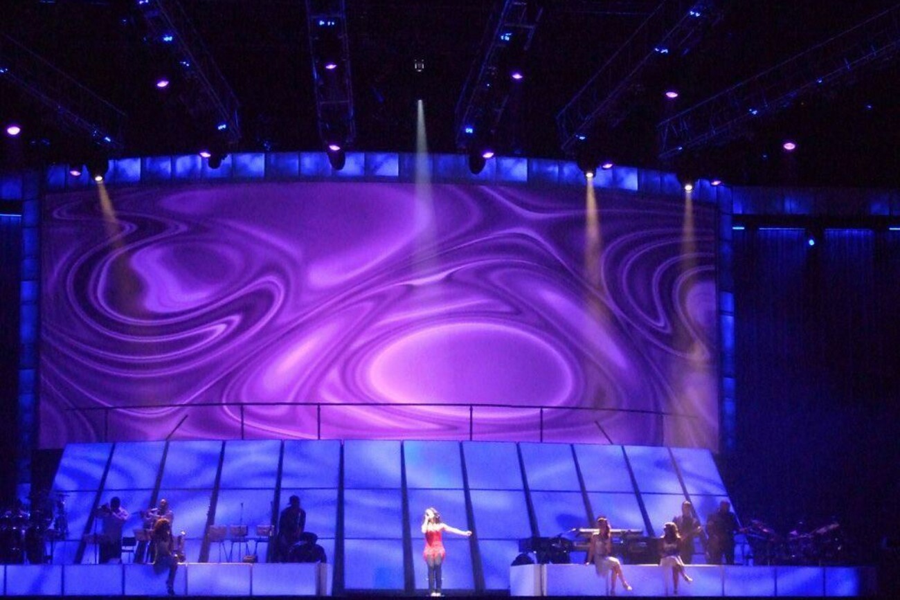 “The stage is crazy because it’s simple but it’s visually stunning. I always call it my little spaceship… There are also screens above the stage that display everything from gorgeous visuals to live footage of whatever we’re doing. It’s very artistic and gorgeous. It’s not only a musical experience, but it’s a visually moving experience as well. And everything just lives together in this way that takes you on a trip. It’s just magical and so beautiful.”