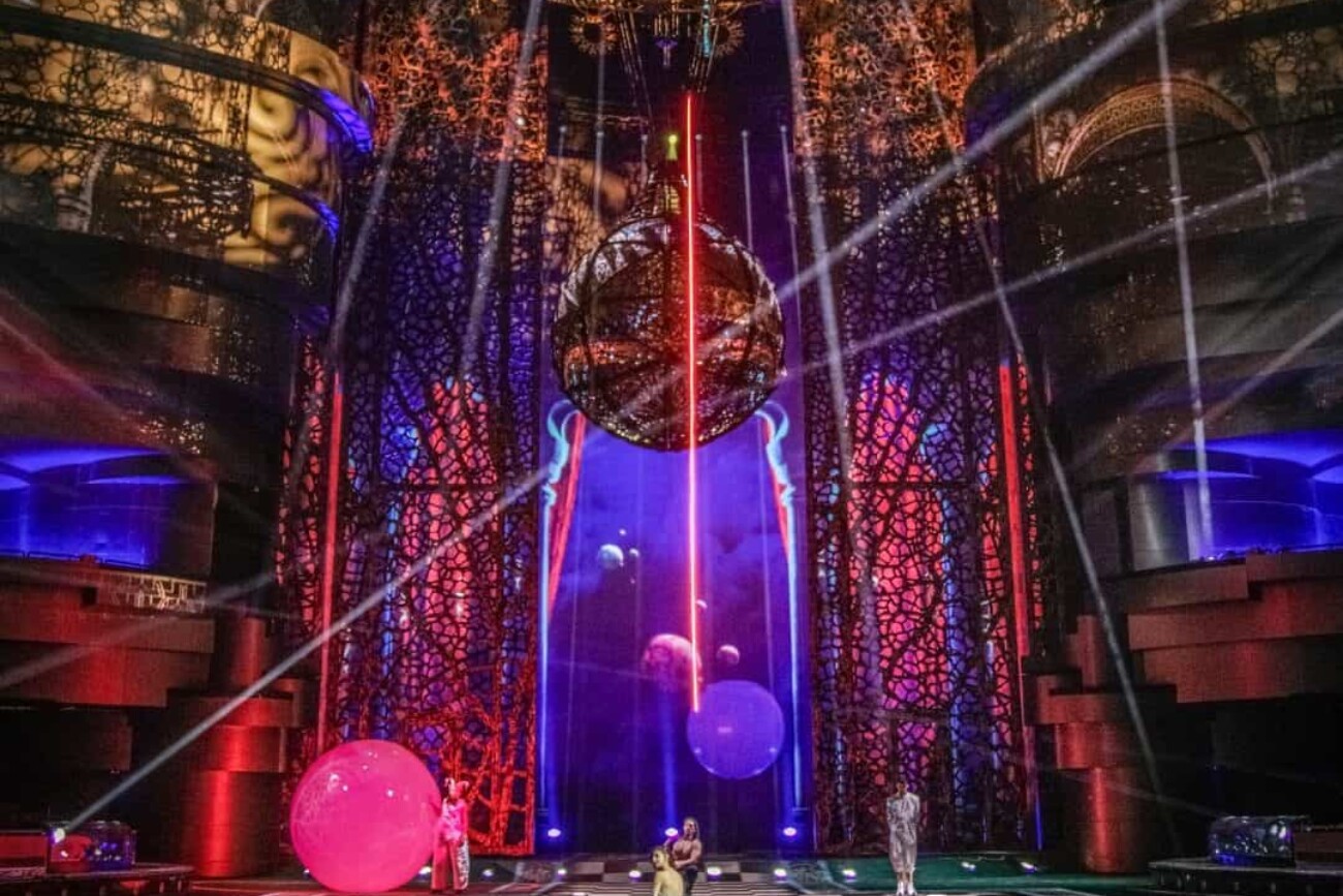 La Perle by Dragone permanent show is the result of over 3 years of pre-production and several months of production. Drop the Spoon, whose collaboration with VYV is over a decade old, developed a unique, highly reactive workflow that meshes perfectly with Photon’s real-time capabilities. The content they developed here is central to the show and lights up the custom-designed theatre using 20 projectors on moving heads and an additional 4 fixed projectors. A total of 40 infrared cameras provide motion tracking for multiple objects as well as projector real-time calibration to light up virtually any surface in the theatre.